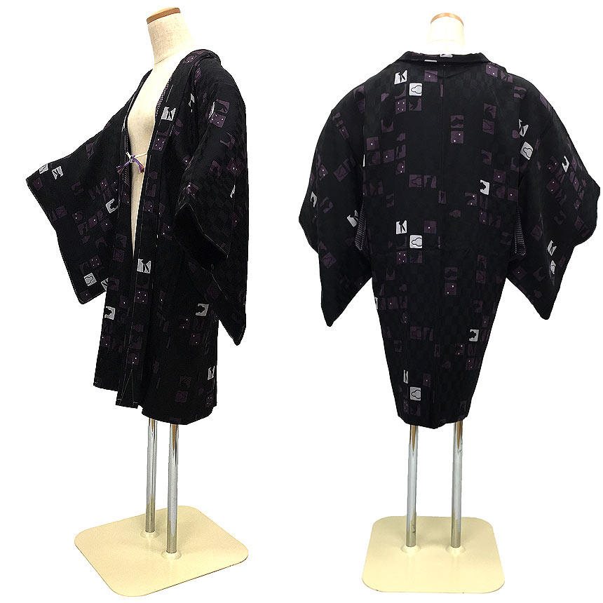 ) PRコメントシックな黒地の市松文様のセミロング丈の長羽織がお仕立て上がり未使用・新品で入荷いたしました。