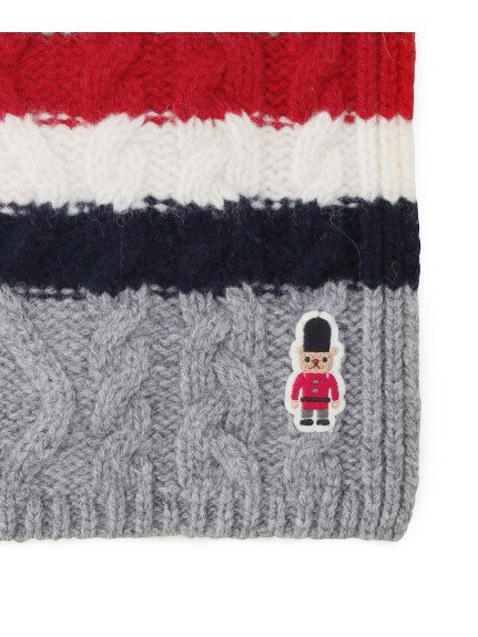 ウォーミーなケーブルニットにマルチストライプをあしらった、ブリティッシュでオシャレなデザイン。