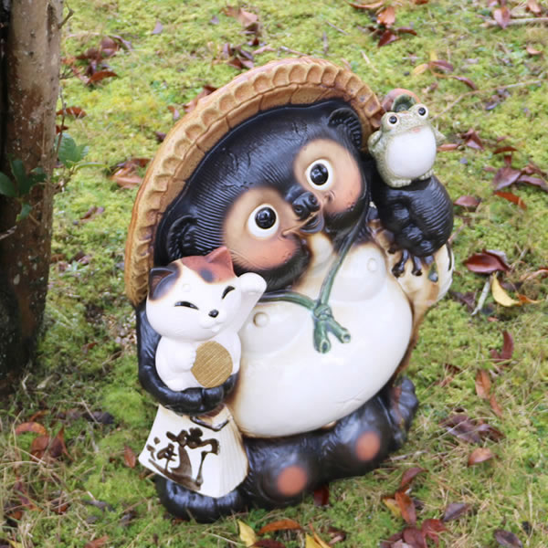 品 番 ta-0135 しがらき焼たぬき 品 名 信楽焼 17号招き蛙・猫付き狸 【送料無料】 サイズ・重量 幅400×奥行290×高さ510mm 重さ10キロ 送料について この商品は、送料無料になります。