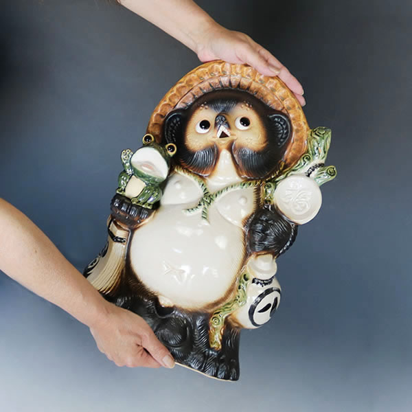 品 番 ta-0141 しがらき焼たぬき 品 名 信楽焼 13号蛙持ち狸【送料無料】 サイズ・重量 幅285×奥行250×高さ430mm 重さ5kg 送料について こちらの商品は、送料無料になります。